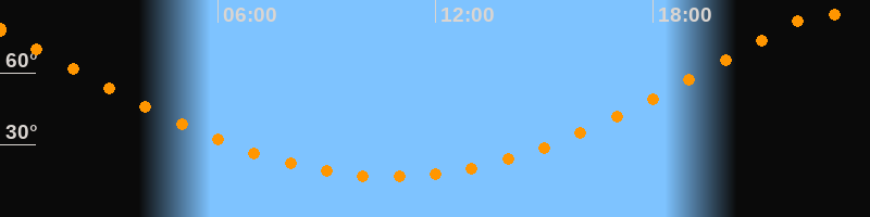 | Höchster Stand (Kulmination) | 22:44 Uhr (h = 84,6°) |