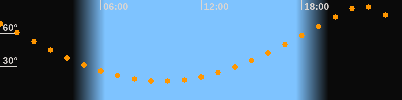 | Höchster Stand (Kulmination) | 21:38 Uhr (h = 84,6°) |