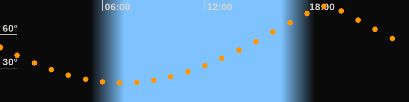 | Höchster Stand (Kulmination) | 19:08 Uhr (h = 84,6°) |