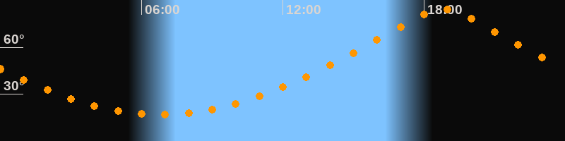 | Höchster Stand (Kulmination) | 18:48 Uhr (h = 84,6°) |