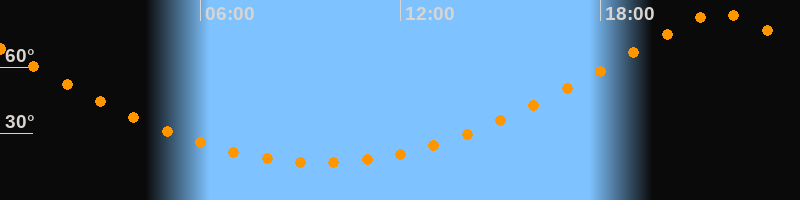 | Höchster Stand (Kulmination) | 21:35 Uhr (h = 84,6°) |