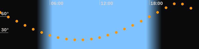 | Höchster Stand (Kulmination) | 21:27 Uhr (h = 84,6°) |