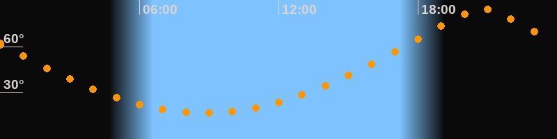 | Höchster Stand (Kulmination) | 20:47 Uhr (h = 84,6°) |