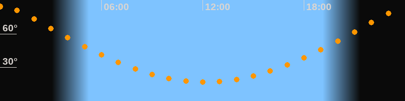 | Höchster Stand (Kulmination) | 00:09 Uhr (h = 84,6°) |