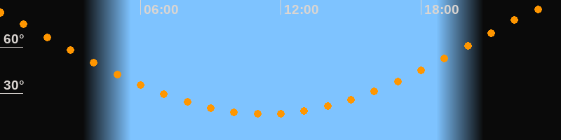 | Höchster Stand (Kulmination) | 23:18 Uhr (h = 84,6°) |