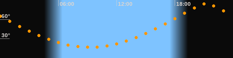 | Höchster Stand (Kulmination) | 21:12 Uhr (h = 84,6°) |