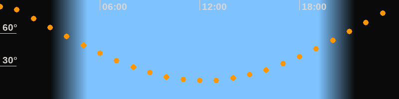 | Höchster Stand (Kulmination) | 00:11 Uhr (h = 84,6°) |