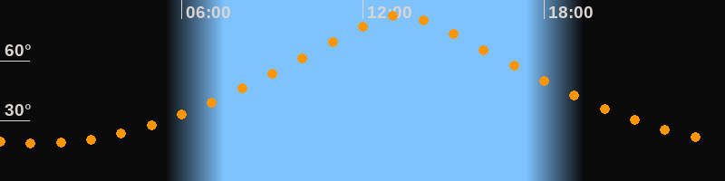 | Höchster Stand (Kulmination) | 13:15 Uhr (h = 82,6°) |