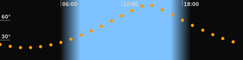 | Höchster Stand (Kulmination) | 14:34 Uhr (h = 82,6°) |
