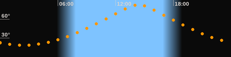 | Höchster Stand (Kulmination) | 14:22 Uhr (h = 82,6°) |
