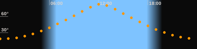 | Höchster Stand (Kulmination) | 12:15 Uhr (h = 82,6°) |