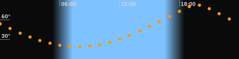| Höchster Stand (Kulmination) | 19:45 Uhr (h = 82,6°) |