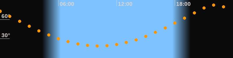 Höchster Stand (Kulmination)22:08 Uhr (h = 82,6°)
