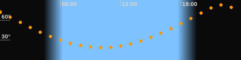 | Höchster Stand (Kulmination) | 22:04 Uhr (h = 82,6°) |