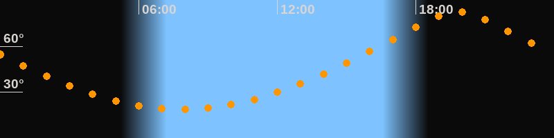 | Höchster Stand (Kulmination) | 19:50 Uhr (h = 82,6°) |