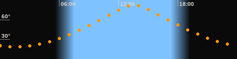 | Höchster Stand (Kulmination) | 13:33 Uhr (h = 82,6°) |