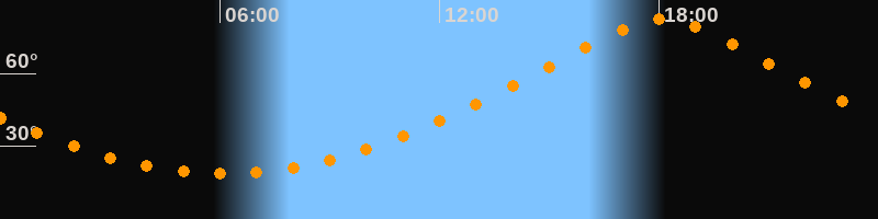 | Höchster Stand (Kulmination) | 18:05 Uhr (h = 82,6°) |