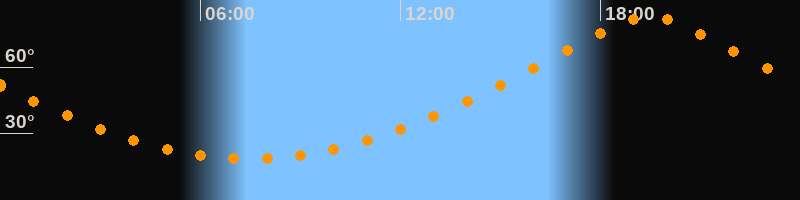 Höchster Stand (Kulmination)19:28 Uhr (h = 82,6°)