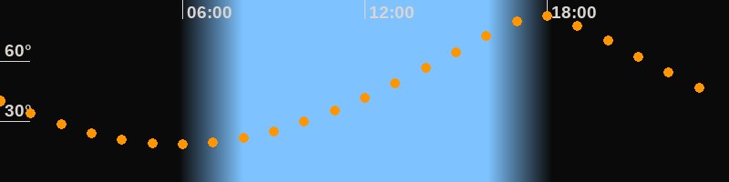| Höchster Stand (Kulmination) | 17:50 Uhr (h = 82,6°) |