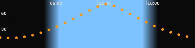 | Höchster Stand (Kulmination) | 13:05 Uhr (h = 82,6°) |