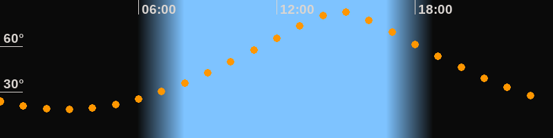 | Höchster Stand (Kulmination) | 14:44 Uhr (h = 82,6°) |