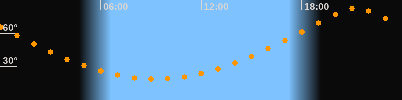 Höchster Stand (Kulmination)21:14 Uhr (h = 82,6°)