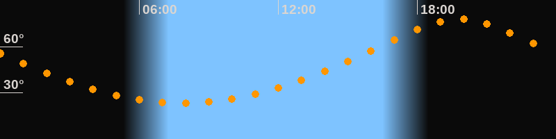 | Höchster Stand (Kulmination) | 19:51 Uhr (h = 78,1°) |
