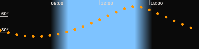 | Höchster Stand (Kulmination) | 16:18 Uhr (h = 78,1°) |