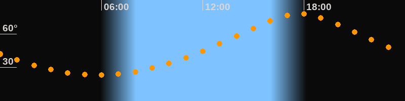 | Höchster Stand (Kulmination) | 17:46 Uhr (h = 78,1°) |