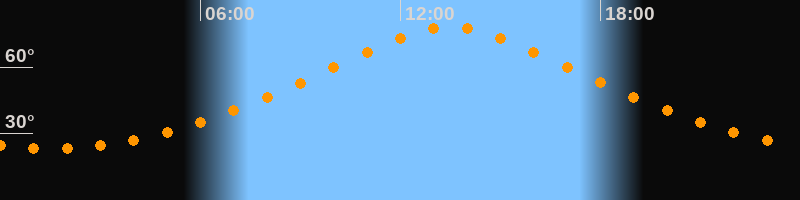| Höchster Stand (Kulmination) | 13:30 Uhr (h = 78,1°) |