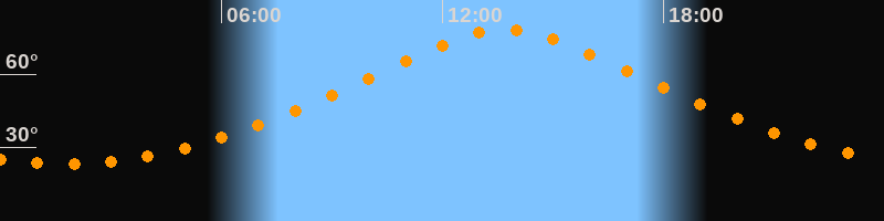 | Höchster Stand (Kulmination) | 13:43 Uhr (h = 78,1°) |