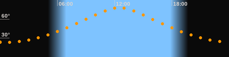 | Höchster Stand (Kulmination) | 12:28 Uhr (h = 78,1°) |