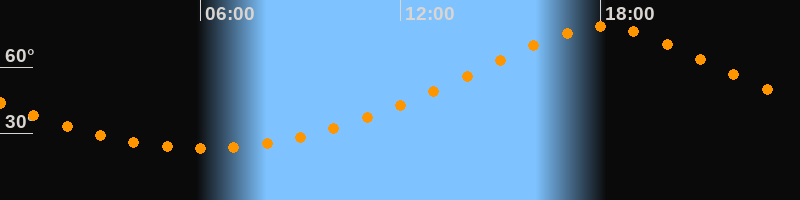 | Höchster Stand (Kulmination) | 18:03 Uhr (h = 78,1°) |