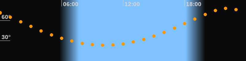 | Höchster Stand (Kulmination) | 22:09 Uhr (h = 78,1°) |
