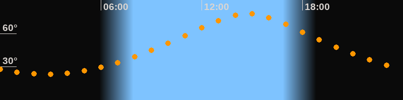 | Höchster Stand (Kulmination) | 14:44 Uhr (h = 78,1°) |