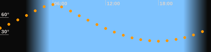 | Höchster Stand (Kulmination) | 05:58 Uhr (h = 82,4°) |