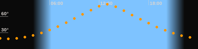 | Höchster Stand (Kulmination) | 12:55 Uhr (h = 82,4°) |