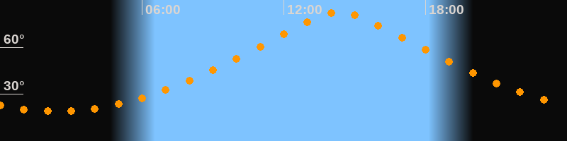 | Höchster Stand (Kulmination) | 14:22 Uhr (h = 82,4°) |