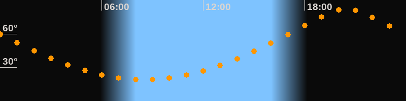 | Höchster Stand (Kulmination) | 20:28 Uhr (h = 82,4°) |