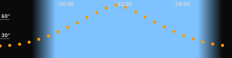 | Höchster Stand (Kulmination) | 12:03 Uhr (h = 82,4°) |
