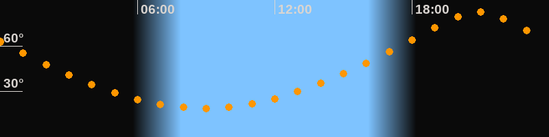 | Höchster Stand (Kulmination) | 20:54 Uhr (h = 82,4°) |