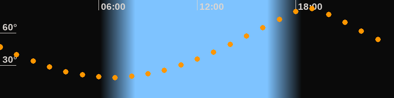 | Höchster Stand (Kulmination) | 18:48 Uhr (h = 82,4°) |