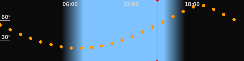 | Höchster Stand (Kulmination) | 19:42 Uhr (h = 82,4°) |