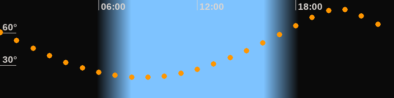 | Höchster Stand (Kulmination) | 20:36 Uhr (h = 82,4°) |