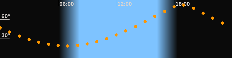 | Höchster Stand (Kulmination) | 18:50 Uhr (h = 82,4°) |