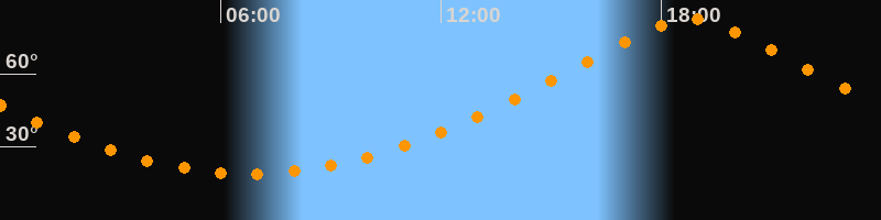 | Höchster Stand (Kulmination) | 18:48 Uhr (h = 82,4°) |