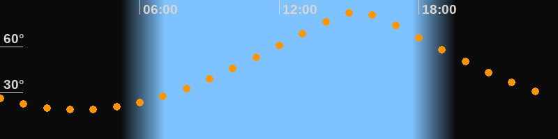 | Höchster Stand (Kulmination) | 15:19 Uhr (h = 82,4°) |