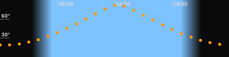 | Höchster Stand (Kulmination) | 12:22 Uhr (h = 82,4°) |