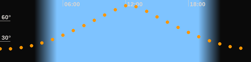 | Höchster Stand (Kulmination) | 12:19 Uhr (h = 82,4°) |