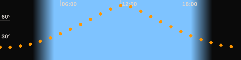 | Höchster Stand (Kulmination) | 12:15 Uhr (h = 82,4°) |